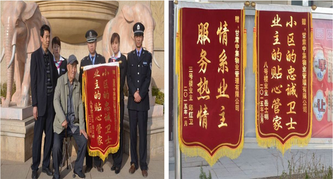 近日,甘肅中集幸福里物業(yè)服務(wù)部收到一封表?yè)P(yáng)信和一面錦旗,幸福里小區(qū)業(yè)主表?yè)P(yáng)小區(qū)的保安人員服務(wù)周到貼心,特送錦旗一面!