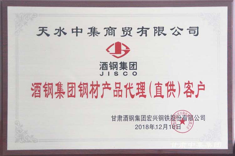 熱烈祝賀甘肅中集實(shí)業(yè)集團(tuán)有限公司榮獲酒鋼集團(tuán)“2018年度金牌代理商”殊榮
