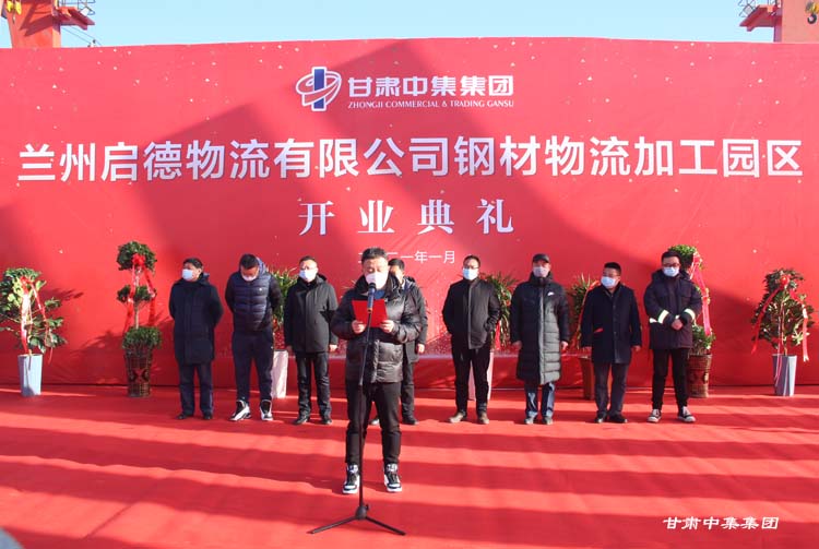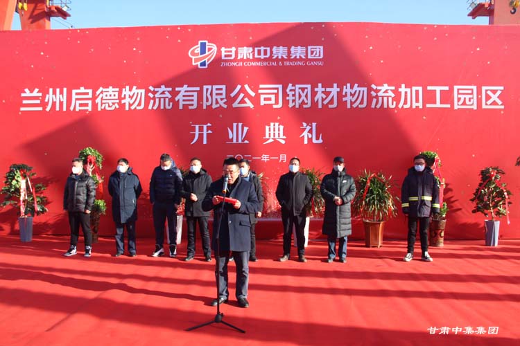2021年1月12日上午10:18分,甘肅中集實(shí)業(yè)集團(tuán)有限公司旗下蘭州啟德物流有限公司河口鋼材物流加工園區(qū)開業(yè)慶典在甘肅物產(chǎn)集團(tuán)河口物流園隆重舉行。甘肅中集實(shí)業(yè)集團(tuán)有限公司黨委書記、董事長周啟濤隆重宣布物流園開業(yè)。酒鋼集團(tuán)、八一鋼鐵集團(tuán)、內(nèi)蒙古包鋼集團(tuán)、甘肅省物產(chǎn)集團(tuán)河口物流園、甘肅省鋼材商會(huì)、物流園轄區(qū)及公司合作伙伴等100余名領(lǐng)導(dǎo)嘉賓參加開業(yè)慶典。