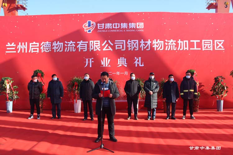 2021年1月12日上午10:18分,甘肅中集實業(yè)集團有限公司旗下蘭州啟德物流有限公司河口鋼材物流加工園區(qū)開業(yè)慶典在甘肅物產(chǎn)集團河口物流園隆重舉行。甘肅中集實業(yè)集團有限公司黨委書記、董事長周啟濤隆重宣布物流園開業(yè)。酒鋼集團、八一鋼鐵集團、內(nèi)蒙古包鋼集團、甘肅省物產(chǎn)集團河口物流園、甘肅省鋼材商會、物流園轄區(qū)及公司合作伙伴等100余名領(lǐng)導嘉賓參加開業(yè)慶典。