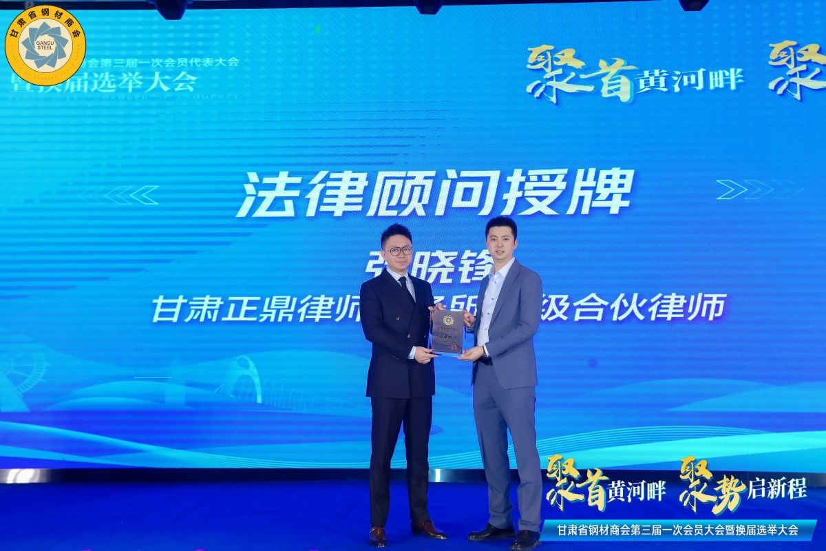 甘肅省鋼材商會(huì)會(huì)長(zhǎng)周啟濤為法律顧問(wèn)單位--甘肅正鼎律師事務(wù)所授牌